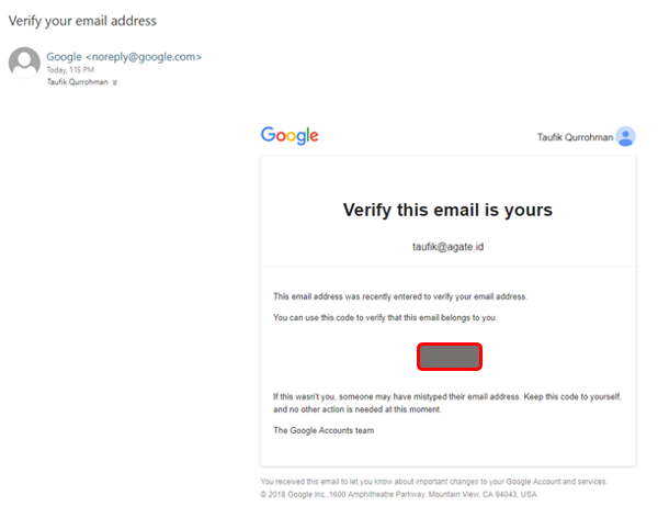 Open your Agate email inbox, there should be an email from Google that contains the code. Open the email