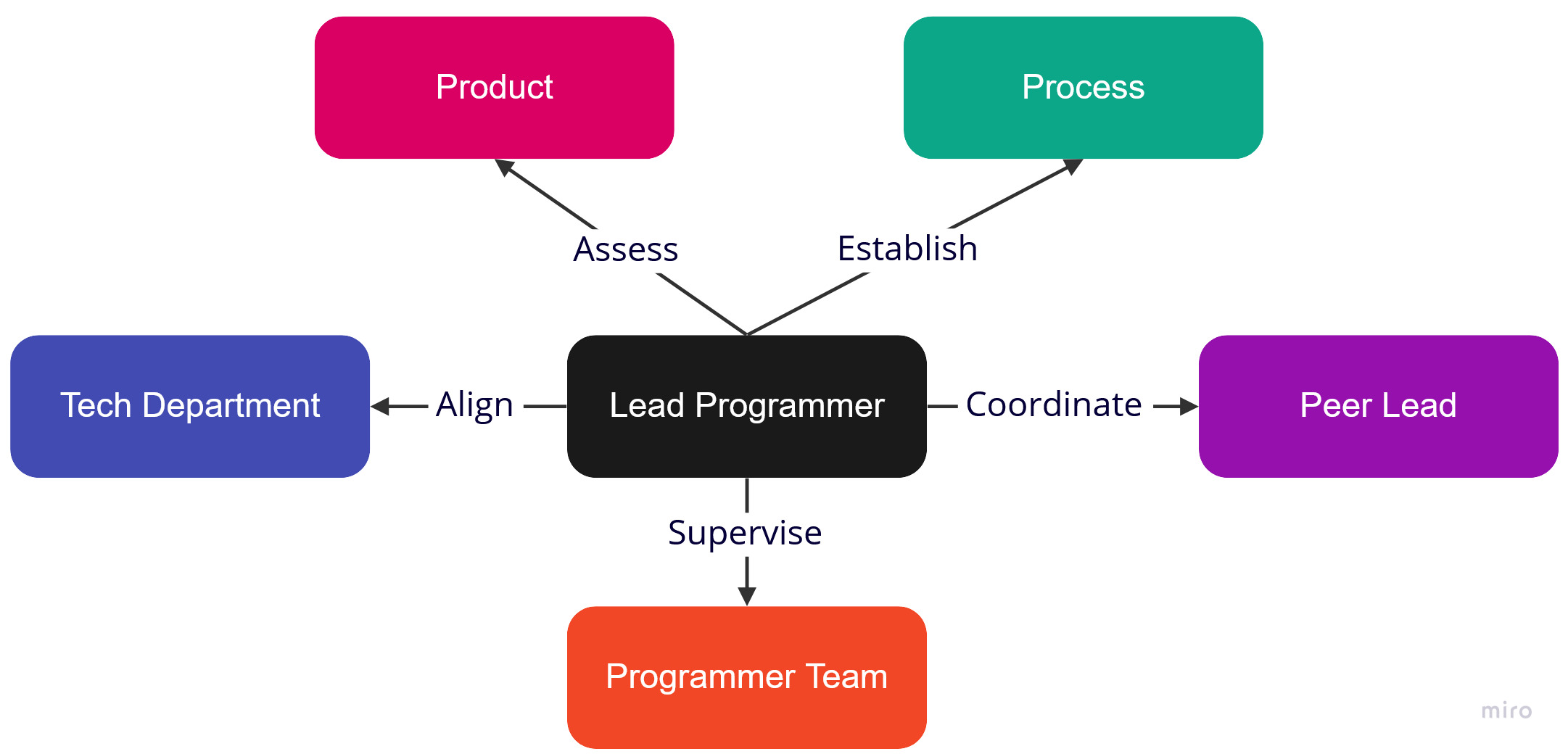 | Team Supervision | Delegate work to Subordinate and ensure their Well-being | People | Programmer | Code Review |