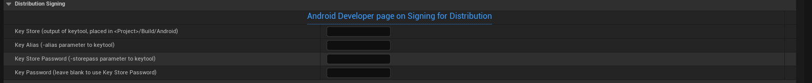 Unreal Edit β Project Settings β Platforms - Android β Distribution Signing