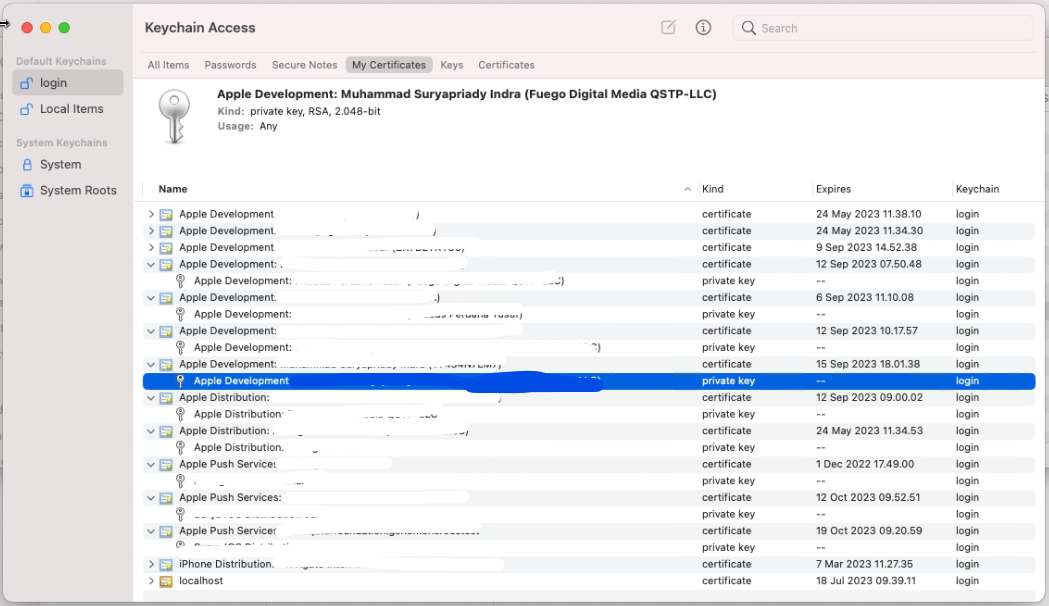 make sure all you’ve downloaded Profile/Certificate registered on keychain access on login tab