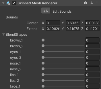 To automate the generation of list of blendshapes that can be modified using slider, we’ll need to iterate through all active skinnedmeshrenderers and get the list of blendshape string from their shared mesh.
