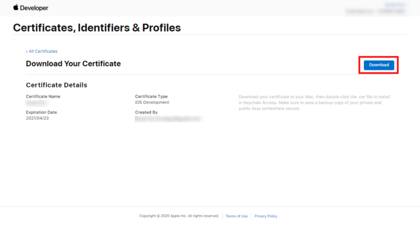 Finally download the certificate that you’ve been created and install it on your mac Keychain Access App
