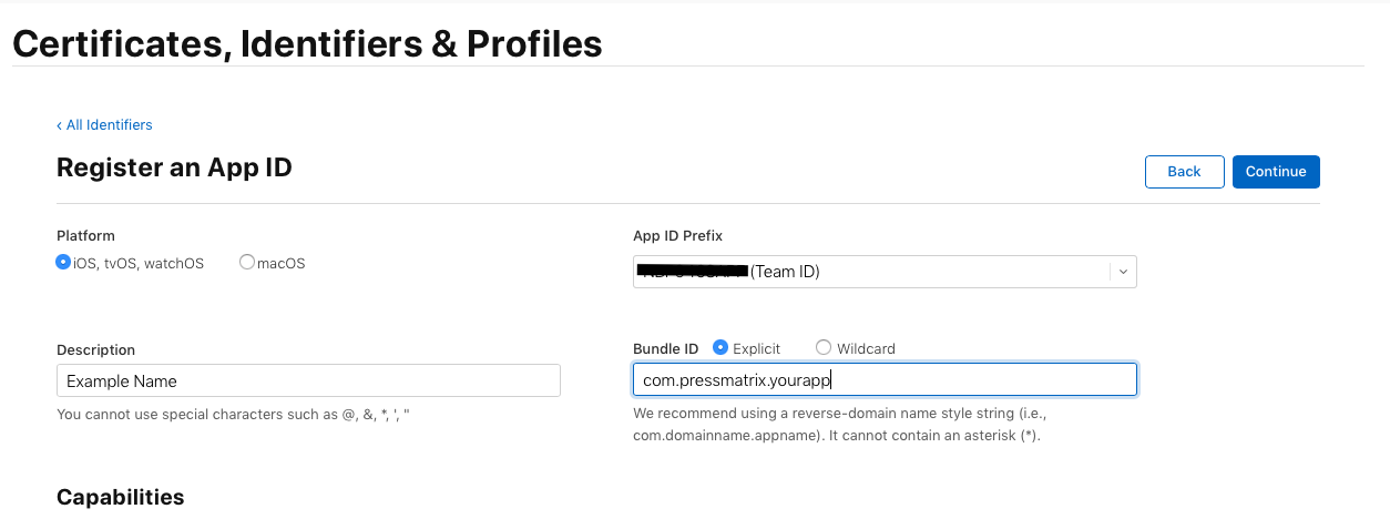 Creating IOS App ID