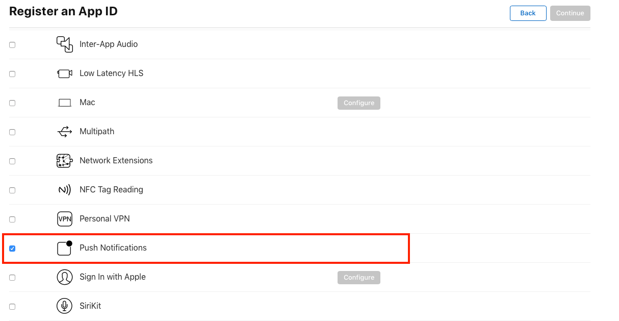 add capability on app that you need for example add push notification capability