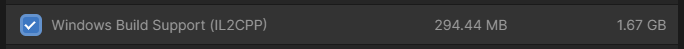 You need to install this Windows IL2CPP support to build the game.