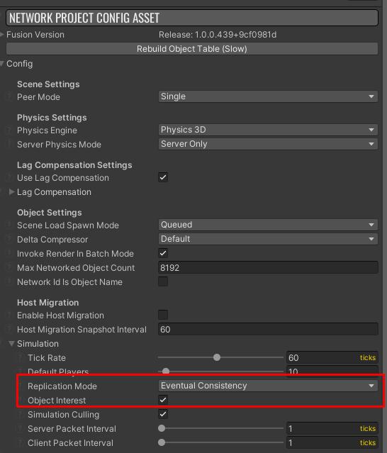 To use this feature, please change Replication Mode in Network Project Config to Eventual Consistency replication mode and Enable Object Interest.