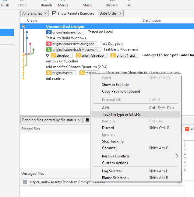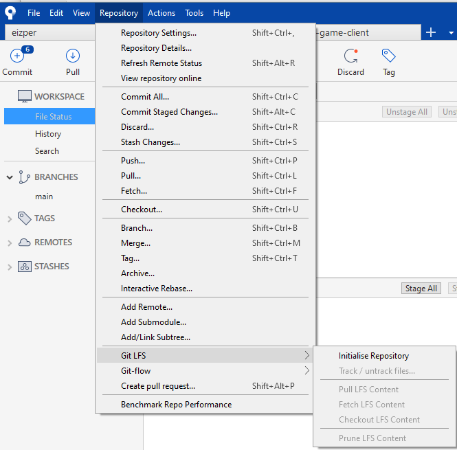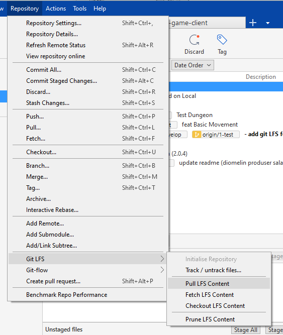 If you don’t you can also manually get LFS files by going to LFS menu and choose Pull LFS Content