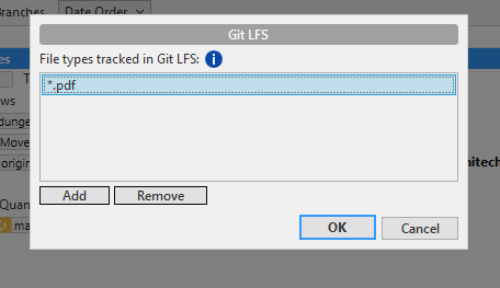 You can also add or remove (or even check) file types in Git LFS in Git LFS menu here