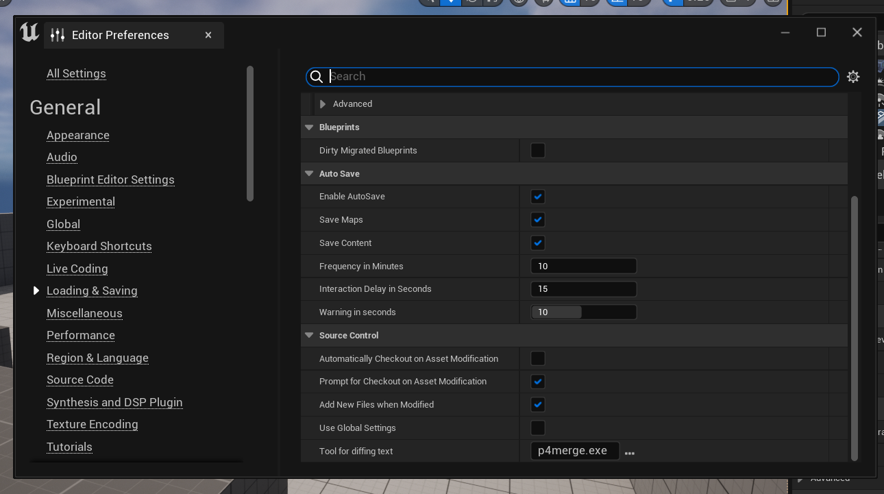 Config/DefaultEditorPerProjectUserSettings.inito the project roots[/Script/UnrealEd.EditorLoadingSavingSettings] ; Required bSCCAutoAddNewFiles=False ; Recommended modifiable based on workflow bAutomaticallyCheckoutOnAssetModification=False bPromptForCheckoutOnAssetModification=False