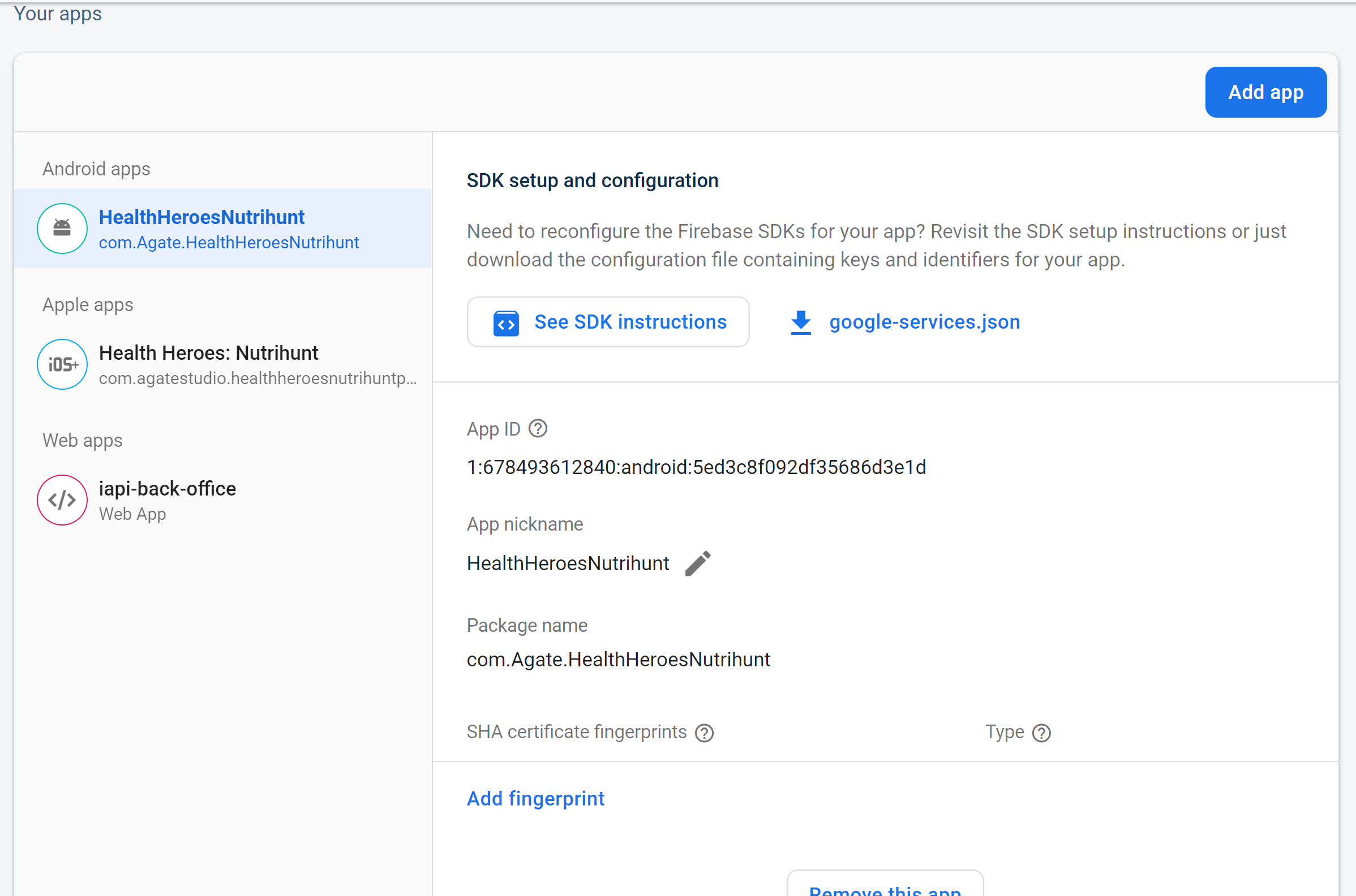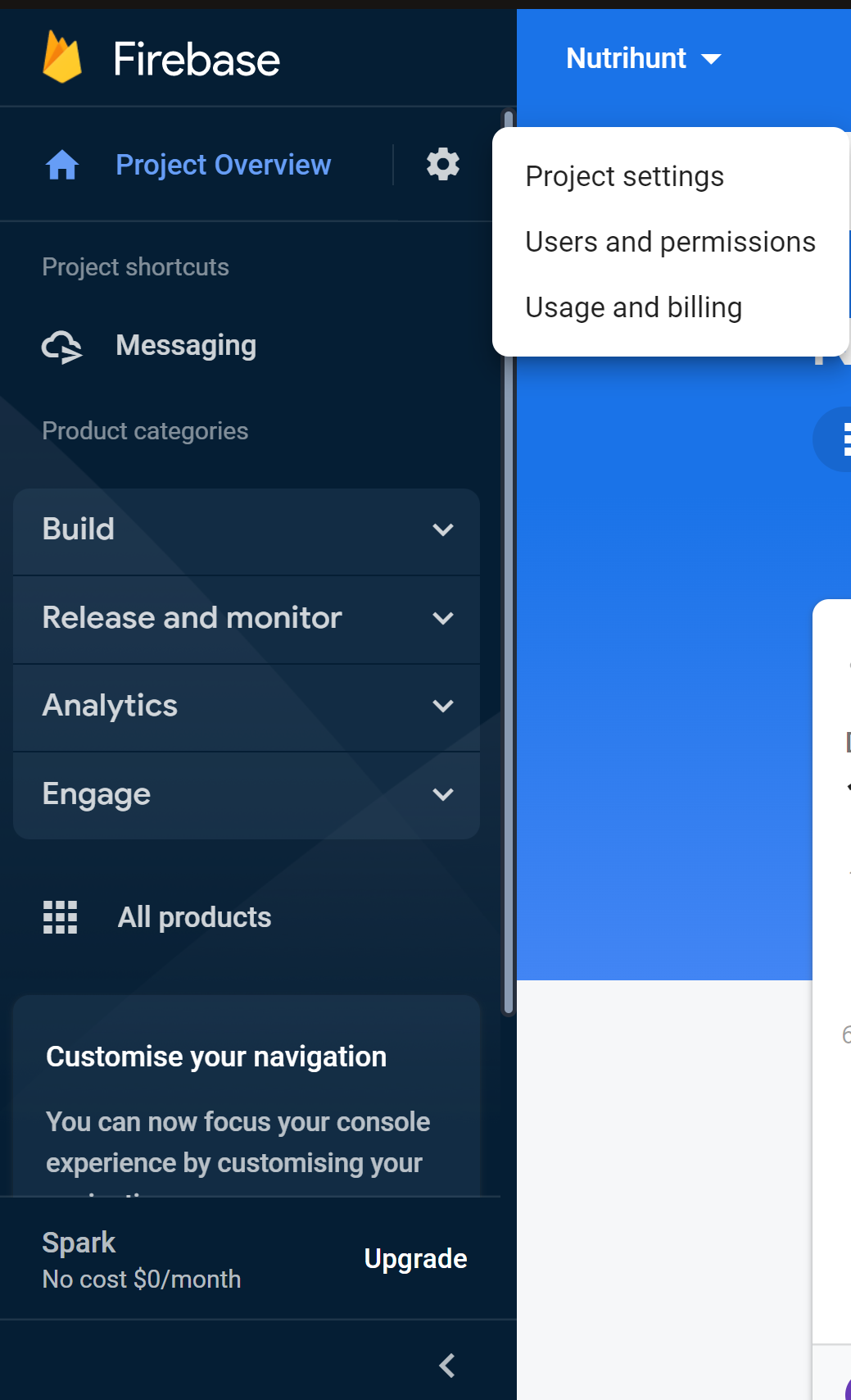 Open Firebase console, in Project Overview press setting icon -> Project settings.