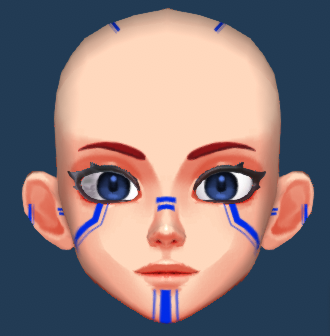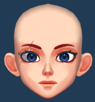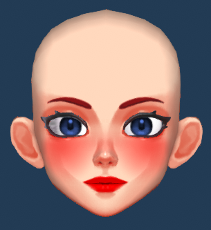 To minimize texture usage, the shader uses blendmask for lips, blush and brows in the red, green, and blue channel to blend the lips, blush, and brows color. Each channel then combined into a single texture.