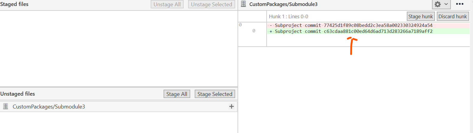 If you have edited packages, you will have mark like this on the submodules