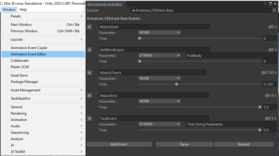 Unity’s animation event editor put all animation event in one timeline. This could make it harder to edit event when more than one events occupy the same or nearby time