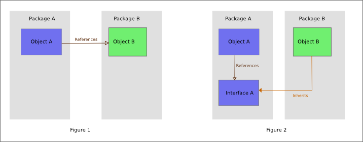 Invert the package dependency from Package A needs Package B to Package B needs Package A, by declaring Interface A in Package A. Interface A contains the definition of the responsibility Object B needed to fulfill.