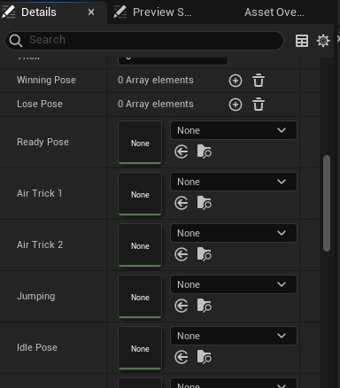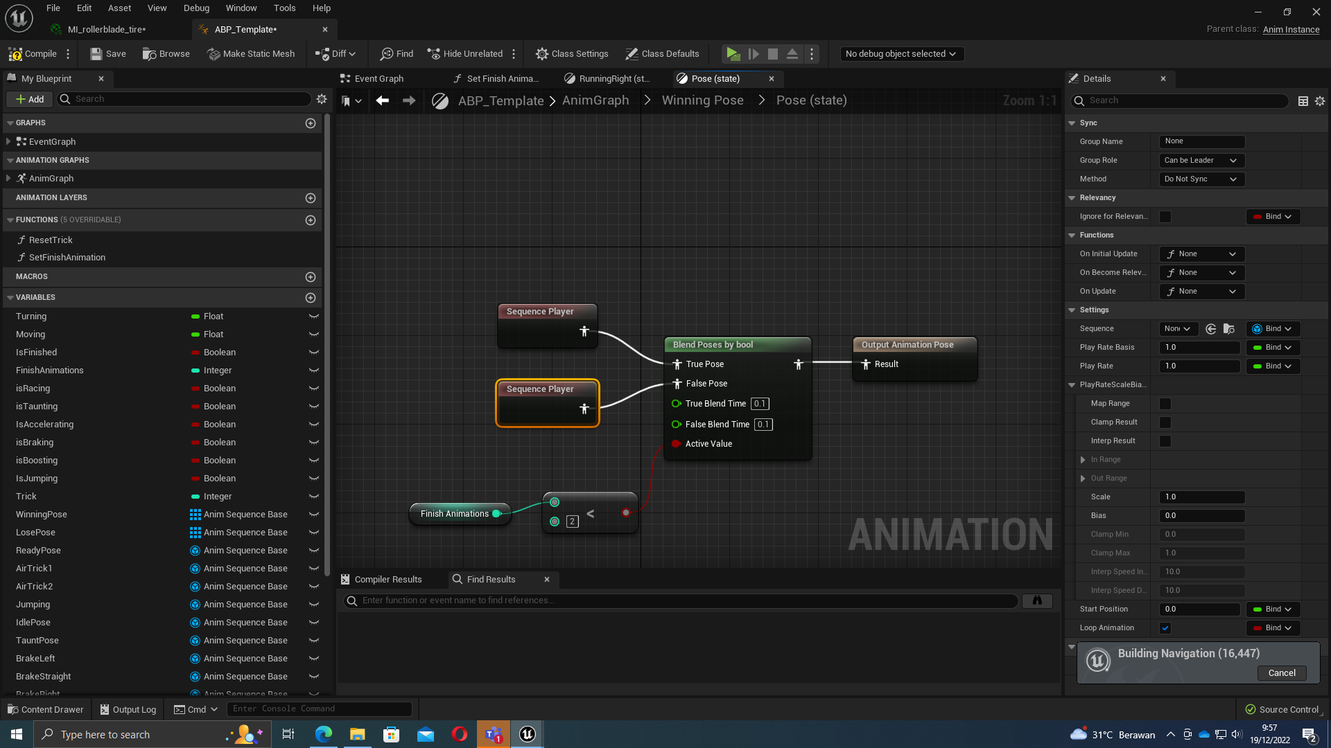 Then add blends and states in the animation graph as usual like in the regular animation blueprint. But instead of using specific animation clip assets, use blank sequence player instead.