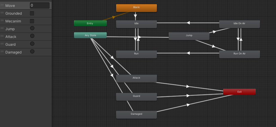 Set up the Mecanim normally in Animator tab, add animation, parameter, transition between animation. for more detailed tutorial regarding unity mecanim, please refer to Unity Official Documentation.