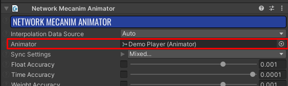 [SerializeField] private Animator _animator; [SerializeField] private NetworkMecanimAnimator _mecanimAnimator; public void Start() { //calling like this, _animator.SetFloat("Move", 1f); //or like this, _mecanimAnimator?.Animator.SetFloat("Move", 1f); //both are legit. //..rest of the code. } -