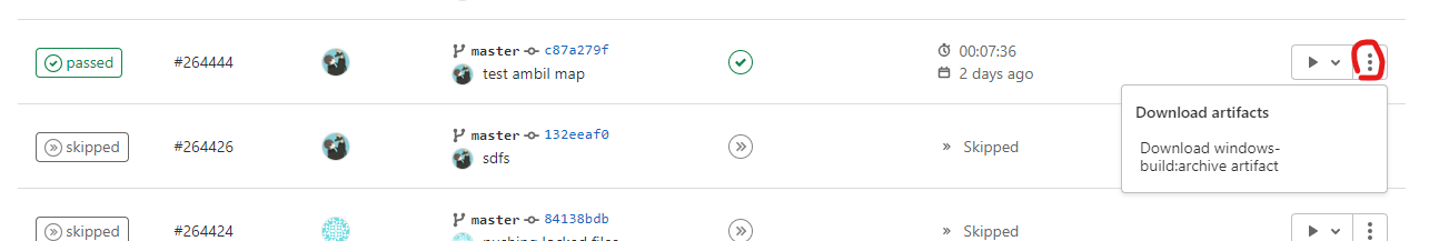Once it passed, the pipelines status and stages would change and you can download the build as artifact by clicking the three dot point at the right side.