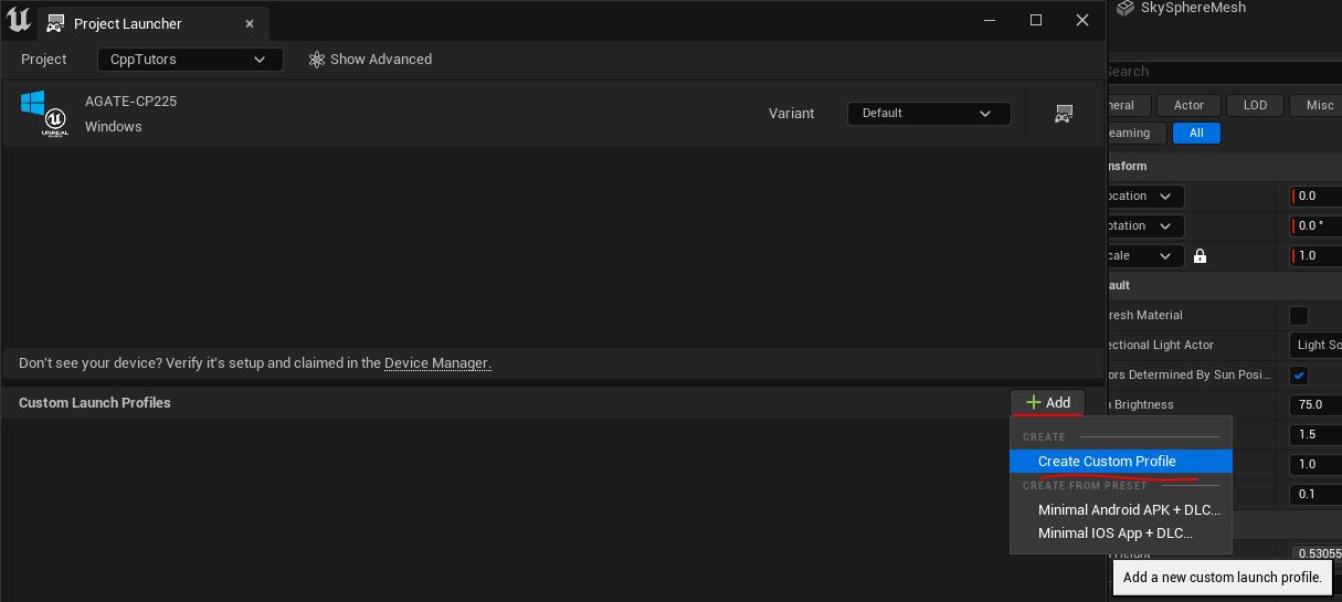 To deploy a build from the Project Launcher, you must have a project that cooked and packaged. There are a couple of ways you can deploy this type of build to a platform. At [Project Launcher in Unreal Editor](Unreal Engine 5 Build Operations 7860d2fed8f2484aa7c7afd641e1594d.md) Custom Profiles under the Deploy section, set the way you want to deploy the build.