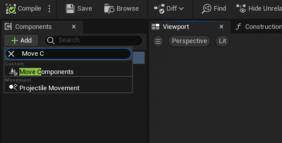 In Blueprint Editor, Add Component, Find MoveComponents. Add it.