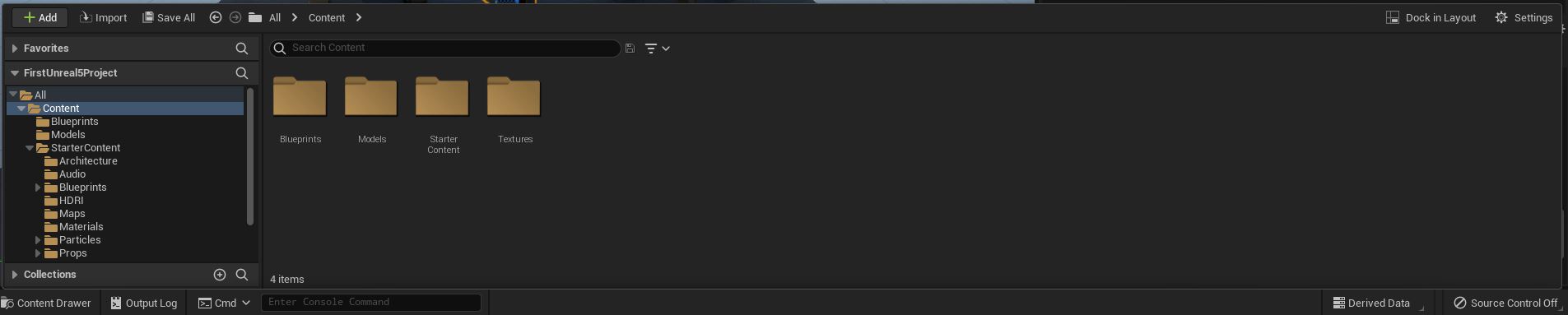 Content Drawer: This panel displays all your project files. Use this to create folders and organize files. You can search for files by using the search bar or filters. Expand to show all assets in your project.