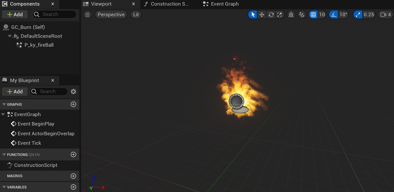 - I've added a particle effect on the GC_Burn as the visual that I want, you can add what you want too.